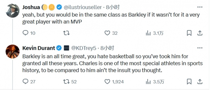 星空入口官网-网友:没冠军你也就是个巴克利 杜兰特:巴克利没你说的那么差 byxiaoqiao 发表于2025年09月07日 09月04日讯 巴克利此前表示,抱团潮流的兴起是因为杜兰特和詹姆斯。对此,杜兰特表示:“要玩甩锅游戏的话,那我选鲍勃-迈尔斯背锅。(勇士前总经理)”球迷回应杜兰特:“如果你不是来到了一支拥有MVP的出色球队,你也就是一个查尔斯-巴克利。”杜兰特表示:“巴克利是篮球传奇人物,你是太讨厌篮球了吧,要不然你不会看低他这么多年。巴克利是体育史上最特别的运动员之一,能够被拿来和他作比较没有你想象的那么丢脸。” 你可能感兴趣的内容 上一篇文章 星空体育app-比利时杯比赛前瞻:皇家克诺克vs洛默尔预测分析(2025年09月07日) 发表于2025年09月07日 byxiaoqiao 查看文章 下一篇文章 英超历史首轮射手王:萨拉赫9球居首,兰帕德、鲁尼&希勒各8球 发表于2025年09月07日 byxiaoqiao 查看文章 你可能会喜欢